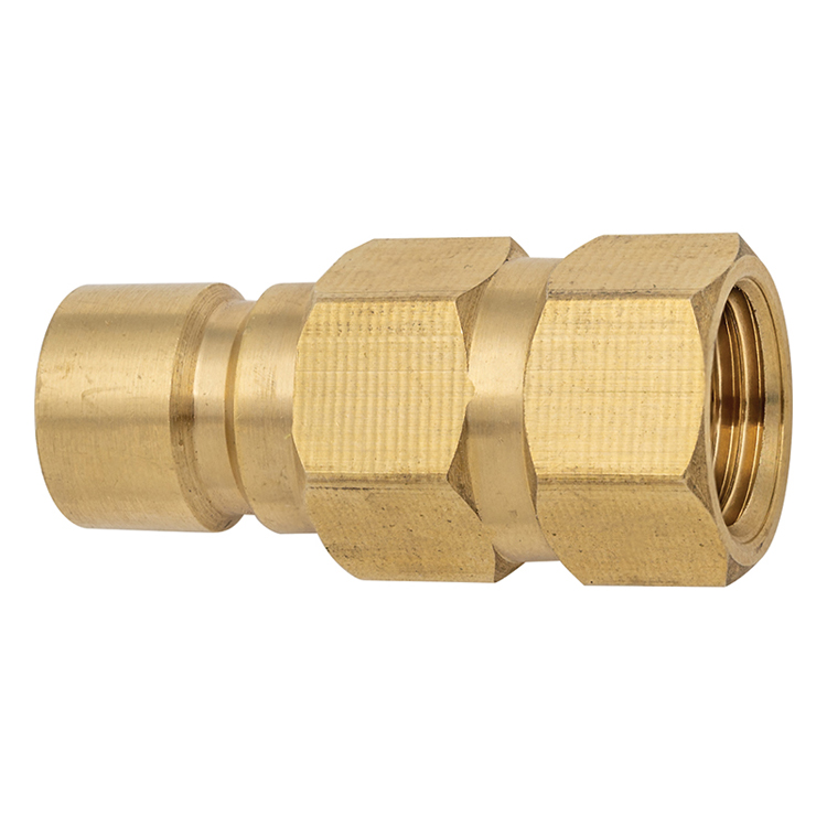 Injection mold couplings provide quick coupling for cooling and heating hoses used on injection molding equipment. In 1/2" size, these couplings are gaining popularity for glycol connections to drive units on progressive cavity jack pumps. These couplings are machined from solid brass bar stock, while stainless steel balls, retaining rings, and springs provide maximum service life. High temperature silicone seals are standard in all couplings. Replacement FPM (Viton®) O-Rings are available and are rated for use from -26°C (-15°F) to 204°C (400°F) with oil-based media. Plugs are machined from solid brass. Please note, valved plugs must be used with valved couplers.